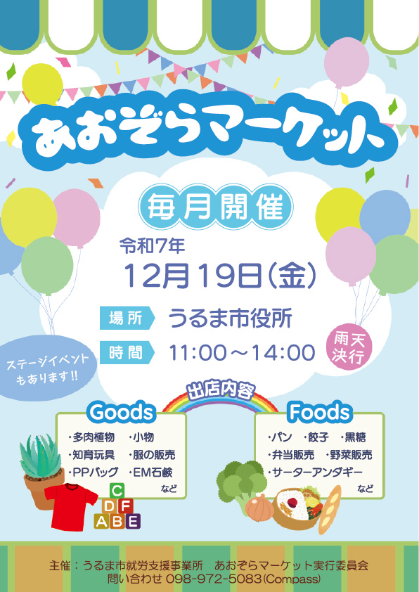 あおぞらマーケットに出店します。 ぜひご来場ください。 【ところ】沖縄県うるま市みどり町1丁目1−1 うるま市役所 【日 [...]
